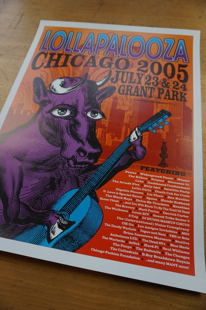 This is the first poster from the single city Lollapalooza festival. This is a limited edition print and will not be reprinted. This poster is sold out online! 18×24