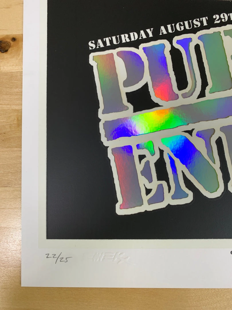 Type: Two piece print. Limited edition laser cut screen printed poster and a holographic foil screen printed poster. Â